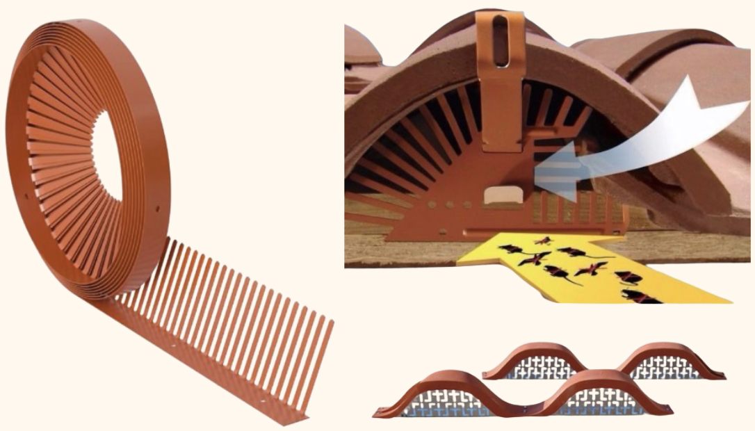 Avec les systèmes de prévention précédents, vous empêchez les rongeurs de s'introduirent sur votre toit et ça empêche la formation des nids de guêpes ou de frelons sous les tuiles.